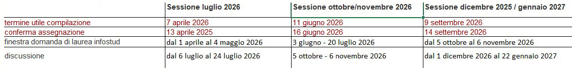 - sessione di laurea: obbligatorio per tutti. Indicare la sessione di laurea scelta per la discussione (marzo/luglio/ottobre/dicembre-gennaio).